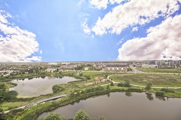 Luxury corner penthouse suite in Oakville with surround floor to ceiling windows offering sunset views from every room and private balcony. Room sizes offer family comfort & entertaining space in open concept living and dining room, kitchen and breakfast bar. 2 bedroom and 2 bath. Home office options. 2 parking spots and locker. Conveniently located to parks and amenities.