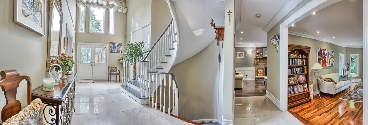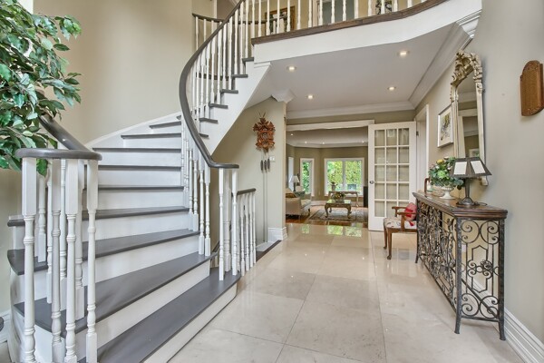 Welcome to a truly exceptional property that presents a once-in-a-lifetime chance to own a detached, approximately 2900 sq ft home in the coveted South West Oakville neighborhood. This remarkable residence offers an unparalleled combination of luxury, location, and breathtaking natural beauty. Perched on a fully landscaped lot, this bright and spacious home captures the essence of lakeside living. As you enter the foyer, you'll be greeted by a double volume ceiling that allows streaming sunlight to illuminate the space, creating an inviting and warm atmosphere. The circular open staircase adds a touch of elegance and serves as a focal point of the grand entrance.